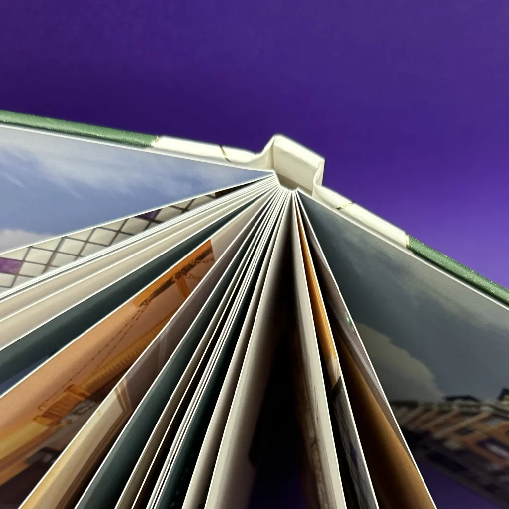 Case binding refers to books that are bound into a hard case cover, which is then wrapped in paper, cloth, leather, faux leather, and various other materials. We make cases bound books in house both mechanically and by hand, allowing us to work efficiently, and utilise the keen attention to detail and precise craftsmanship of our production team.